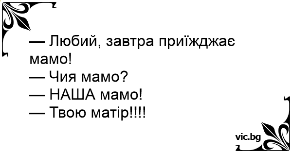 — Любий, завтра приїжджає мамо!