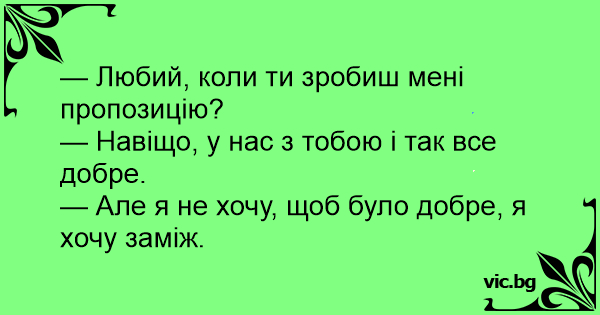 — Але я не хочу, щоб було добре, я хочу заміж.