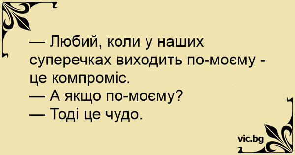 — Любий, коли у наших суперечках виходить по-моєму - це компроміс.