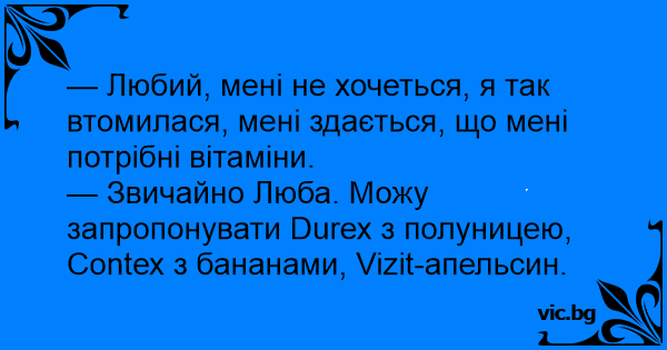 — Любий, мені не хочеться, я так втомилася, мені здається, що мені потрібні вітаміни.