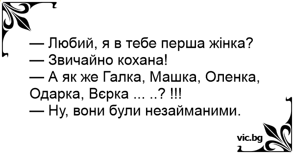 — Любий, я в тебе перша...