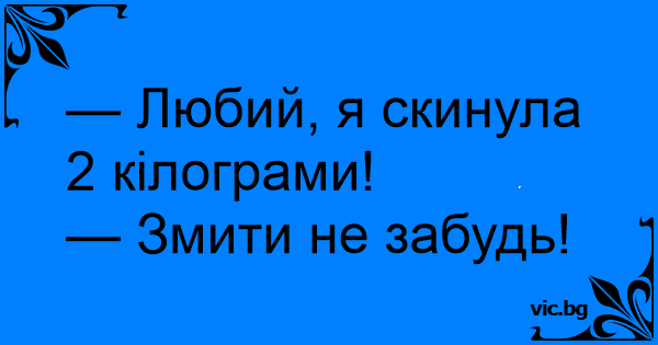 — Любий, я скинула 2 кілограми!