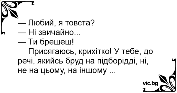 — Присягаюсь, крихітко! У тебе, до речі, якийсь бруд на підборідді, ні, не на цьому, на іншому ...