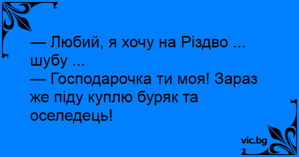— Любий, я хочу на Різдво ... шубу ...