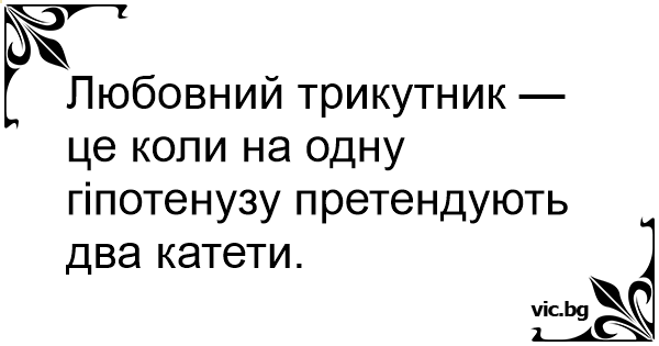 Любовний трикутник — це коли на одну гіпотенузу претендують два катети.