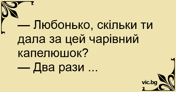 — Любонько, скільки ти дала за цей чарівний капелюшок?