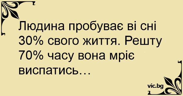 Людина пробуває ві сні 30% свого життя. Решту 70% часу вона мріє виспатись…