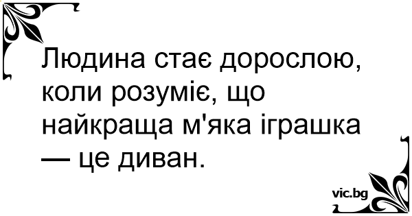 Людина стає дорослою, коли розуміє, що найкраща м'яка іграшка — це диван.