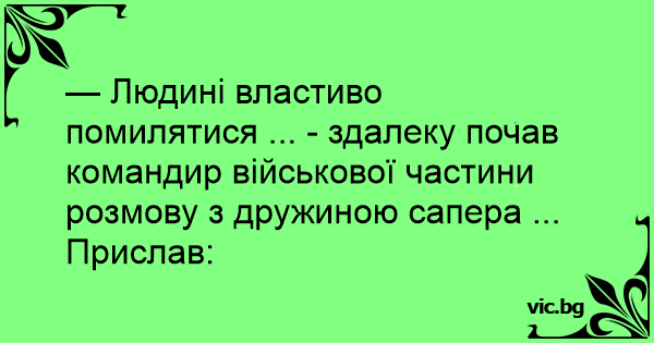 — Людині властиво помилятися ... - здалеку почав командир військової частини розмову з дружиною сапера ...
