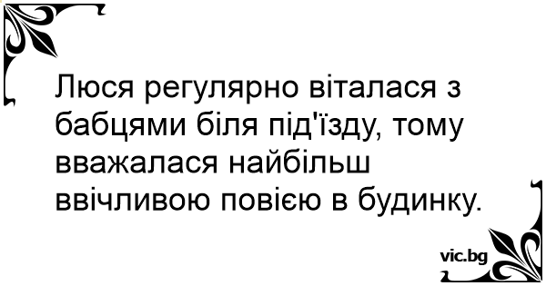 Люся регулярно віталася з бабцями біля під'їзду, тому вважалася найбільш ввічливою повією в будинку.