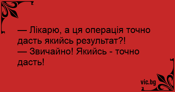 — Лікарю, а ця операція точно дасть якийсь результат?!