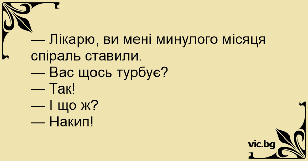 — Лікарю, ви мені минулого місяця спіраль ставили.