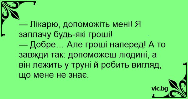 — Лікарю, допоможіть мені! Я заплачу будь-які гроші!