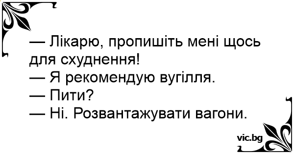 — Лікарю, пропишіть мені щось для схуднення!