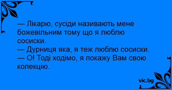 — Лікарю, сусіди називають мене божевільним тому що я люблю сосиски.