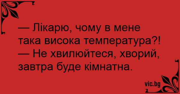 — Не хвилюйтеся, хворий, завтра буде кімнатна.