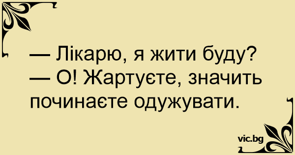 — Лікарю, я жити буду?