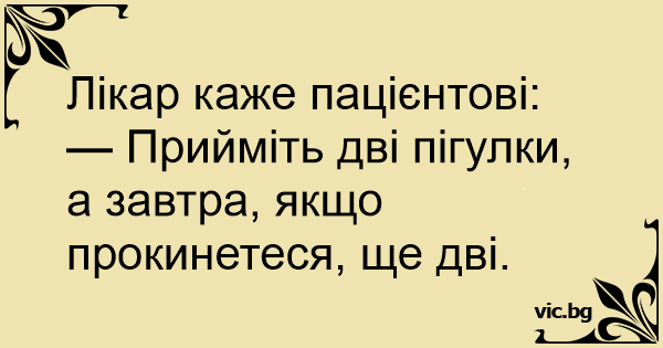 — Прийміть дві пігулки, а завтра, якщо прокинетеся, ще дві.