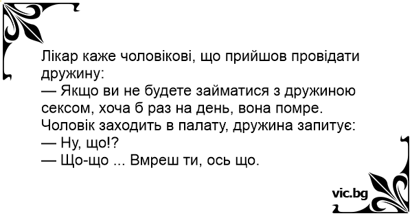 — Якщо ви не будете займатися з дружиною сексом, хоча б раз на день, вона помре.