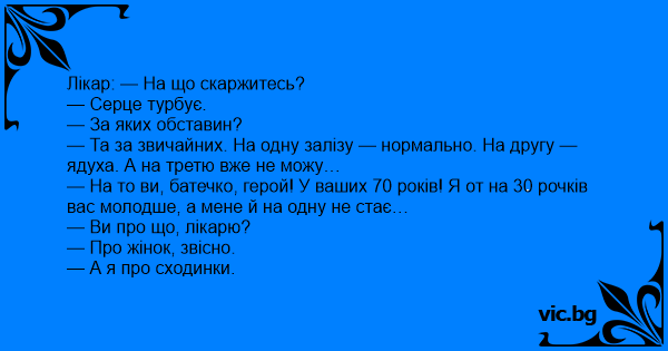 Лікар: — На що скаржитесь?