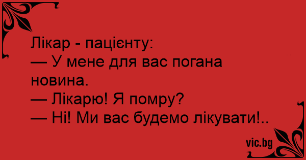 — Лікарю! Я помру?