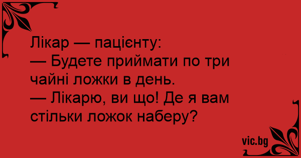 — Лікарю, ви що! Де я вам стільки ложок наберу?