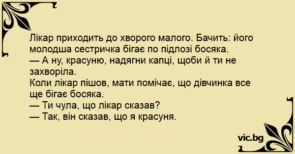 Лікар приходить до хворого малого. Бачить: його молодша сестричка бігає по підлозі босяка.