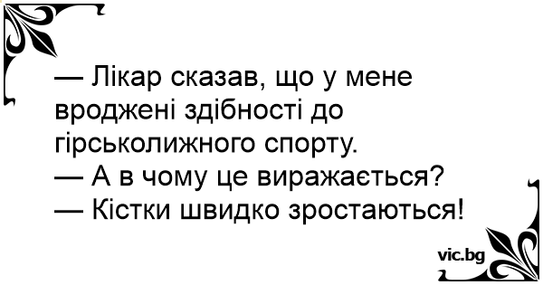 — Лікар сказав, що у мене вроджені здібності до гірськолижного спорту.