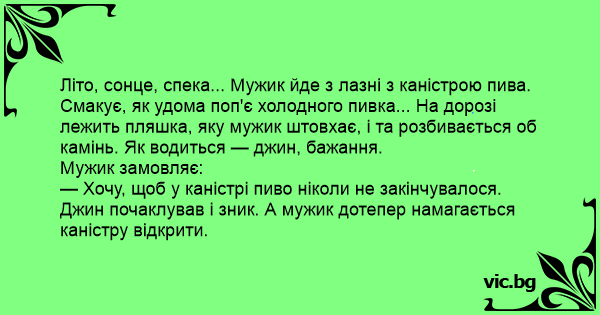 — Хочу, щоб у каністрі пиво ніколи не закінчувалося.