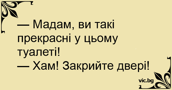 — Мадам, ви такі прекрасні у цьому туалеті!