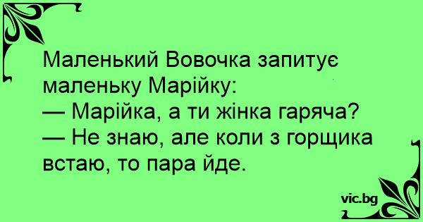 — Не знаю, але коли з горщика встаю, то пара йде.