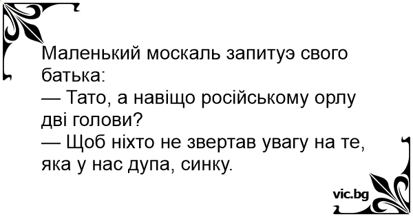— Тато, а навіщо російському орлу дві голови?
