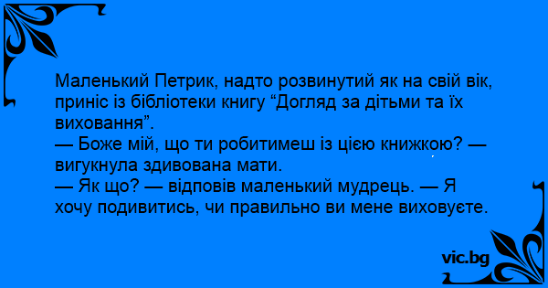 — Як що? — відповів маленький мудрець. — Я хочу подивитись, чи правильно ви мене виховуєте.