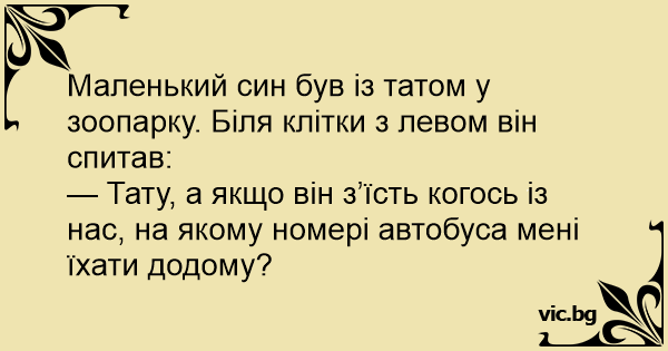 — Тату, а якщо він з’їсть когось із нас, на якому номері автобуса мені їхати додому?
