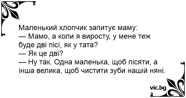 — Мамо, а коли я виросту, у мене теж буде дві пісі, як у тата?