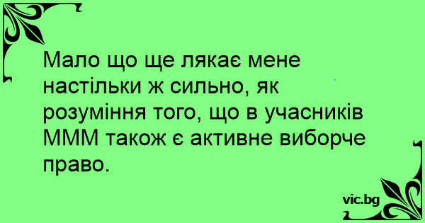 Мало що ще лякає мене настільки ж сильно, як розуміння того, що в учасників МММ також є активне виборче право.