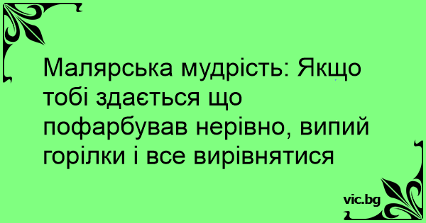 Малярська мудрість: Якщо тобі здається що пофарбував нерівно, випий горілки і все вирівнятися