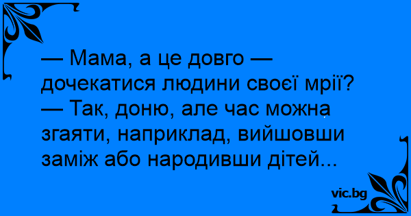 — Мама, а це довго — дочекатися людини своєї мрії?