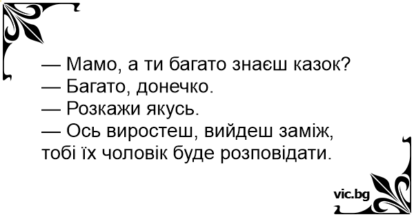 — Ось виростеш, вийдеш заміж, тобі їх чоловік буде розповідати.