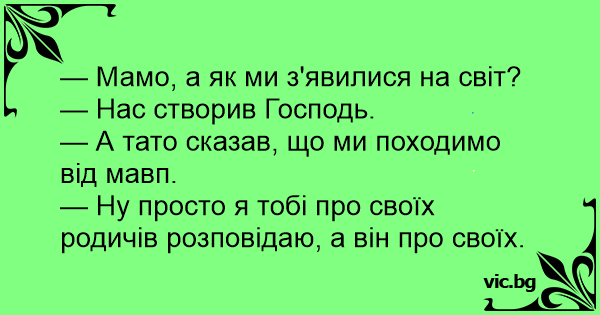— Мамо, а як ми з'явилися на світ?