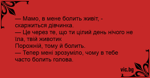 — Мамо, в мене болить живіт, - скаржиться дівчинка.