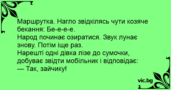 Маршрутка. Нагло звідкілясь чути козяче бекання: Бе-е-е-е.