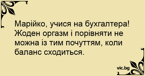 Марійко, учися на бухгалтера! Жоден оргазм і порівняти не можна із тим почуттям, коли баланс сходиться.