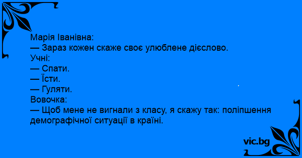 — Щоб мене не вигнали з класу, я скажу так: поліпшення демографічної ситуації в країні.