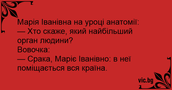 — Срака, Маріє Іванівно: в неї поміщається вся країна.