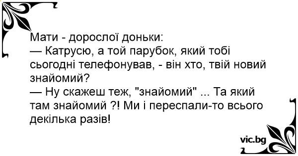 — Катрусю, а той парубок, який тобі сьогодні телефонував, - він хто, твій новий знайомий?