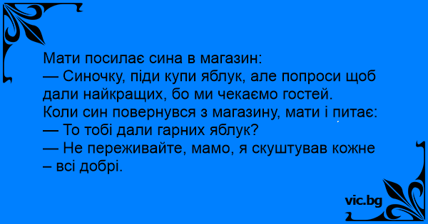 — Синочку, піди купи яблук, але попроси щоб дали найкращих, бо ми чекаємо гостей.