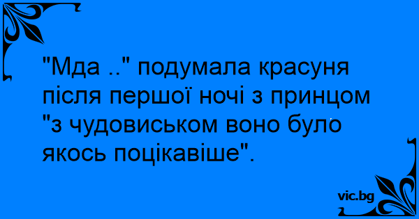 "Мда .." подумала красуня після першої ночі з принцом "з чудовиськом воно було якось поцікавіше".