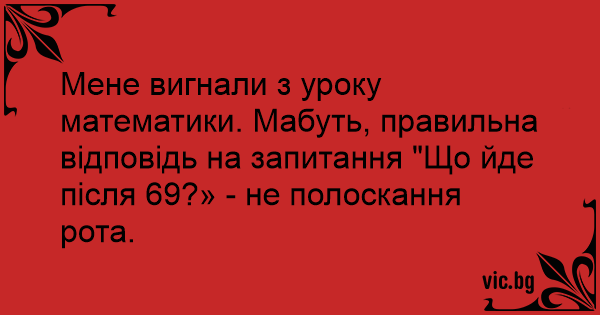 Мене вигнали з уроку математики. Мабуть, правильна відповідь на запитання "Що йде після 69?» - не полоскання рота.