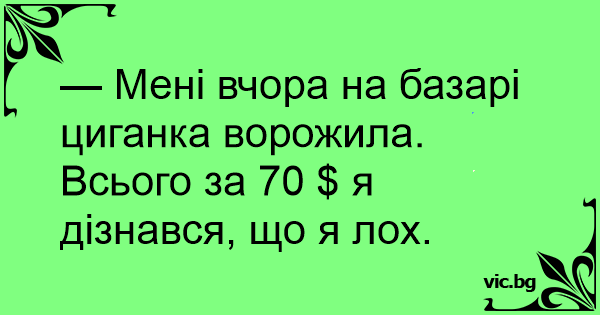 — Мені вчора на базарі циганка ворожила. Всього за 70 $ я дізнався, що я лох.